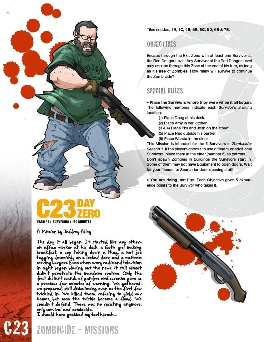 Day ZeroClassic MissionJeffrey Alley Live the day the zombie invasion began, and how Season 1’s survivors got to stick together! PDF 5 July 2013 https://cdn.svc.asmodee.net/production-zombicide/uploads/image-converter/2016/01/Mission_C23.webp 1094 845 Thorn https://cdn.svc.asmodee.net/production-zombicide/uploads/2021/11/logo-zombicide-r2.png Thorn2013-07-05 16:52:412018-05-28 09:32:14Day Zero