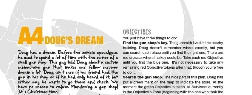 Classic MissionDoug’s DreamGuillotine Games Doug found a clue leading to his dream weapon. The gunsmith, however, has well protected his creation. Beware, it’s a trap! PDF 13 October 2012 https://cdn.svc.asmodee.net/production-zombicide/uploads/image-converter/2016/01/Mission_A4.webp 1094 845 Thorn https://cdn.svc.asmodee.net/production-zombicide/uploads/2021/11/logo-zombicide-r2.png Thorn2012-10-13 16:52:412018-05-28 09:32:36Doug’s Dream