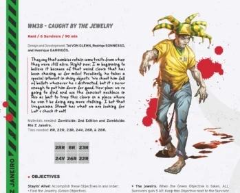 Zombicide est un jeu de société coopératif avec des figurines, pour 1 à 6 joueurs à partir de 14 ans. Choisissez un survivant avide de revanche après une apocalypse zombies ! Trouvez des armes, éliminez des zombies, gagnez de l’expérience et personnalisez vos héros : plus vous tuez de zombies, plus il y en a. Complétez les objectifs de la mission pour gagner la partie !