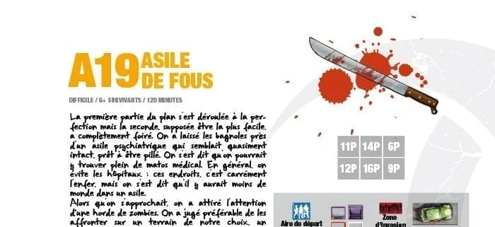 Alors qu’on s’approchait, on a attiré l’attention d’une horde de zombies. On a jugé préférable de les affronter sur un terrain de notre choix, un endroit facile à défendre : l’hôpital psychiatrique. Mais dès qu’on a mis le pied à l’intérieur, on s’est rendu compte qu’il n’était pas vide du tout. Heureusement, on a une solution pour ce genre de problème : ça s’appelle le zombicide !