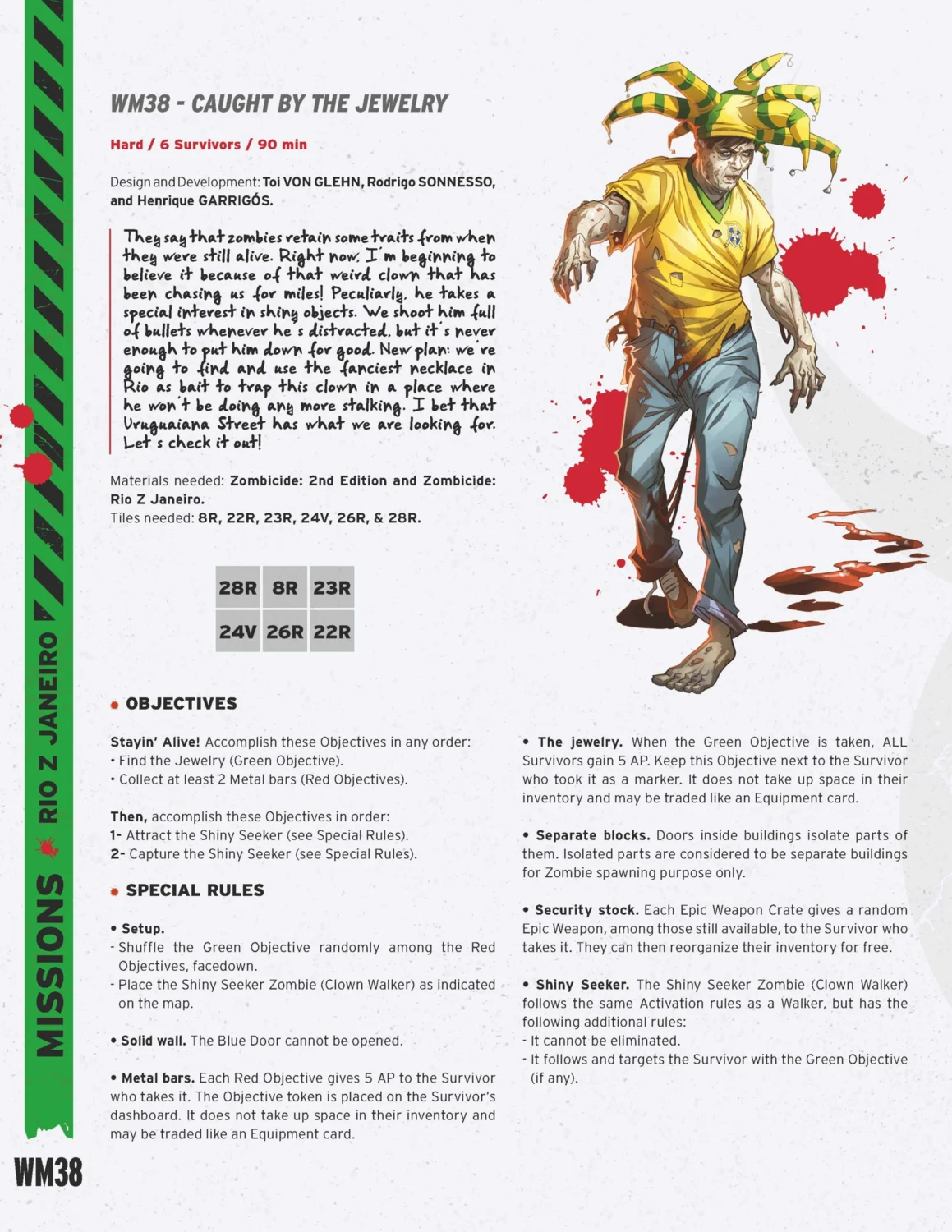 They say zombies keep old traits, and I believe it. A clown’s been chasing us, obsessed with anything shiny. Shooting won’t stop him, so we’ll use Rio’s fanciest necklace as bait. Off to Uruguaiana Street!