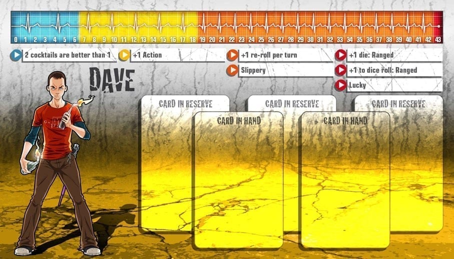 • Dave s’entend bien avec les Survivants qui foncent dans le tas. Il trouve pour eux le meilleur matériel et garde les gadgets dont personne ne voudrait. Si ses compagnons le protègent efficacement et lui donnent de quoi survivre, Dave pourrait bien leur donner un de ses cocktails Molotov en échange. Disposer de deux de ces armes en deux endroits distincts est un précieux atout !