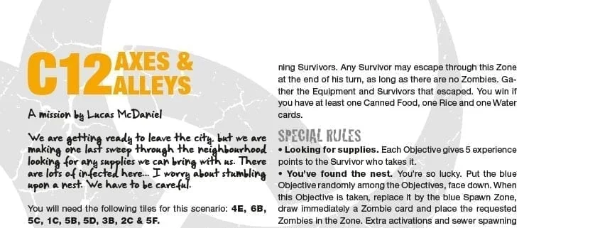 Votre équipe ratisse une dernière fois le quartier en quête de nourriture avant de quitter la ville. Les zombies pourrait vous réserver un dernier tour…
