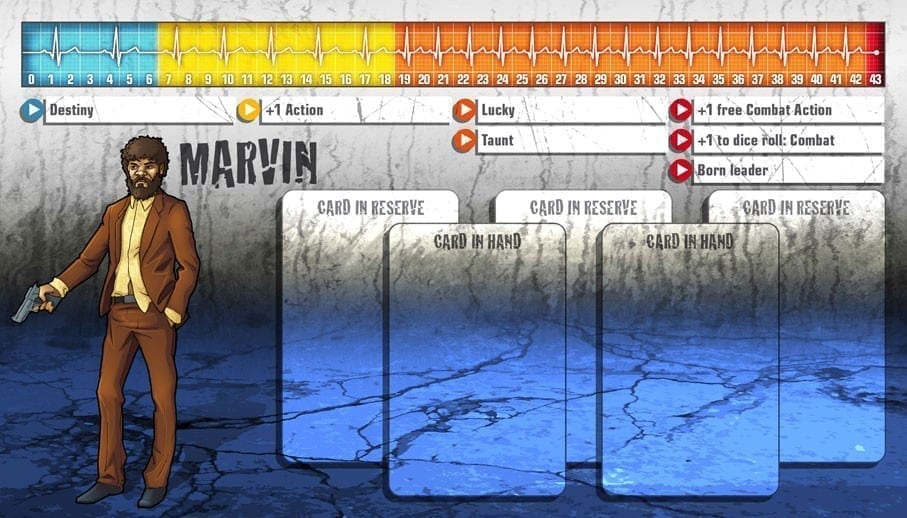 • Il n’y a jamais de mauvaise surprise avec Marvin Redfield. Destinée, sa Compétence de départ, lui permet de Fouiller sans craindre l’apparition inopportune d’un zombie. Equipé d’une lampe-torche, il devient celui qui fournit rapidement du matériel de qualité à toute l’équipe. Dans ce cas, tout le monde a intérêt à rester au plus près de ce garde du corps ! C’est au Niveau Orange que le joueur oriente définitivement le gameplay de Marvin : avec la Compétence Provocation, il devient un contrôleur très efficace et oriente les marées de zombies au bénéfice de l’équipe. Chanceux, il devient un bon combattant capable de manier des armes réclamant un peu de chance (canon scié, pistolet-mitrailleur, tronçonneuse) avec une efficacité accrue. Le choix de Compétence du Niveau Rouge s’effectue en fonction des situations. En groupe étendu, Chef-né accroît les chances de survie d’un Survivant ami en lui permettant de se sortir d’un mauvais pas. L’Action de Combat gratuite ou le bonus au résultat du dé achève de faire de lui un combattant de qualité, en fonction de son arsenal de fin de partie.