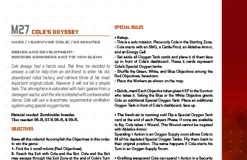 In this new solo scenario, Cole decides to answer a call for help from an old friend: to enter his old, abandoned robot factory and retrieve three of his most important original robots. However, it will not be a simple task.