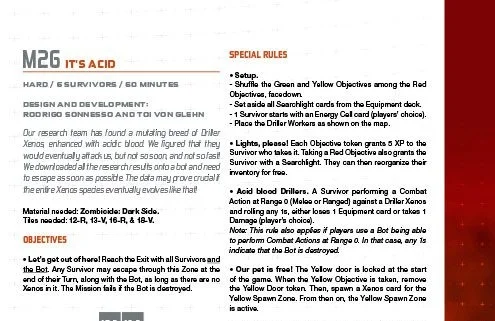 We found a mutating breed of Driller Xenos that has acidic blood. We downloaded all the research results about them onto a bot and need to escape, taking care to not get the bot dissolved – or worse, us!