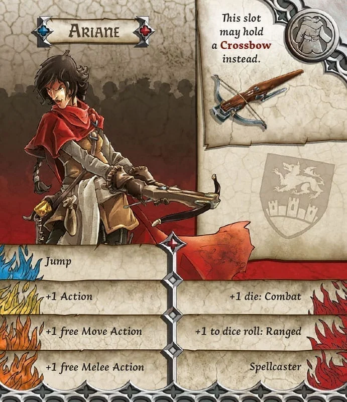 Orpheline des rues, Ariane dut rapidement apprendre à devenir agile, coriace et habile afin de garder une longueur d’avance sur les hommes d’armes de la milice. Elle finit par rejoindre différentes Guildes, travaillant souvent pour plusieurs d’entre elles à la fois. Sa dernière mission fut celle qu’elle regretta amèrement d’avoir acceptée. On l’engagea pour voler les clés de la ville, détenues par le maire en personne. Mais hélas, son commanditaire s’avéra être un nécromancien. Elle parvint toutefois à échapper à ses griffes et survécu à l’invasion. À présent, elle propose son aide à tous ceux qui sont prêts à se dresser contre la terrible menace. Personne n’a jamais percé son terrible petit secret… du moins jusqu’ici.