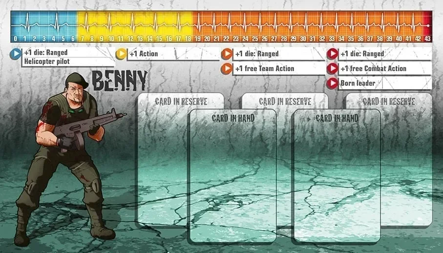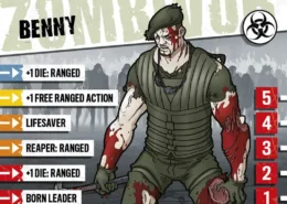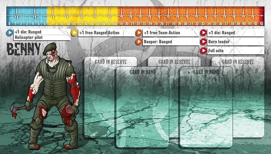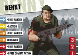 En manque d’argent pour sa bière, Benny répondit à la petite annonce d’une société spécialisée dans l’événementiel pour enfants. Ainsi naquit une star. Acteur Shakespearien dans l’âme, Benny était capable de jouer le chevalier, le géant, l’ours, le zèbre qui parle et même le para, mais gentil. Il était à un anniversaire, déguisé en Captain Jack Action, la star de la télé, quand les zombies ont débarqué. Le flingue que Benny avait en main n’était qu’un jouet mais comme tous les grands acteurs, il a improvisé, et donc quitté les lieux. Il continue à porter le costume pour dissuader les gens de l’arnaquer, et ses compétences en tant qu’acteur font de lui un guerrier hautement prisé dans les groupes de survivants… pour le moment.