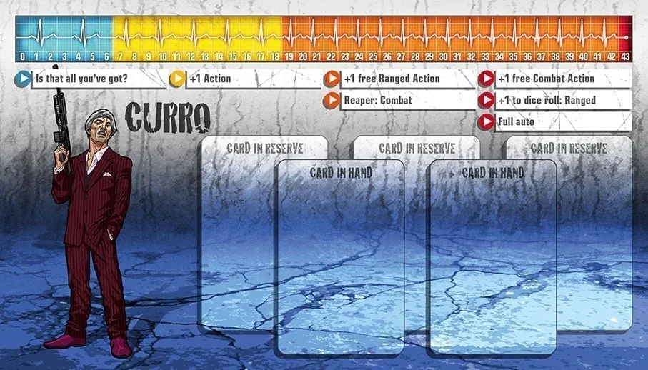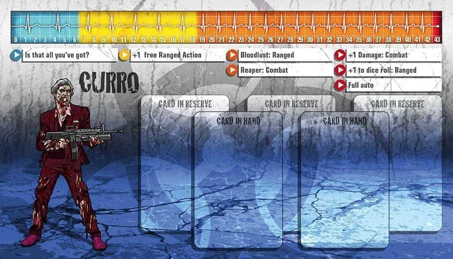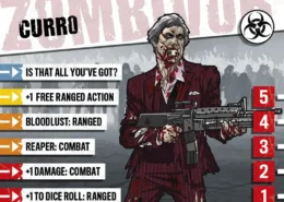 Un homme violent dans un monde violent, Curro se sent enfin en paix avec lui-même… en quelque sorte. Au moins, il est plus heureux en tant que massacreur de zombies qu’en tant qu’éditeur (quoi qu’on puisse dire que le business de l’édition soit aussi retors qu’une guerre de gangs). A force de chercher la meilleure marge, il alla trop loin et finit en prison. Quand l’Apocalypse débuta et que la prison fut envahie, il se chargea personnellement d’une demi-douzaine de zombies Berserkers avec un simple pied-de-biche. Le monde a besoin de plus d’hommes comme lui, bien que la rage qui l’anime risque de le transformer en monstre pire que ceux qu’il affronte.