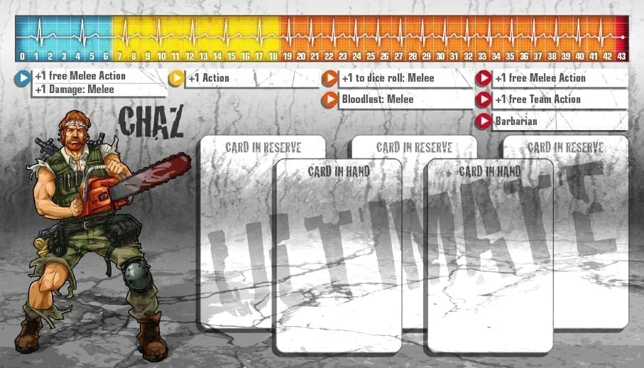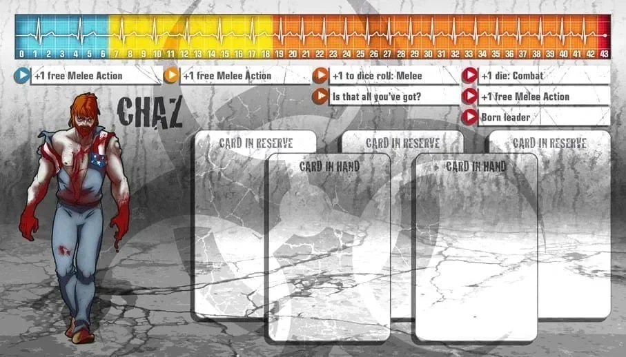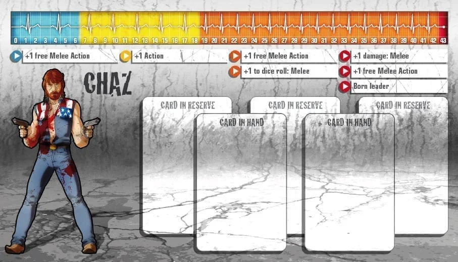 Eagle Chaz est un homme, un vrai. Il a combattu le crime et le mal. Il a lutté pour la liberté, il a défendu les faibles contre les puissants. Il sait comment utiliser une arme et mais son corps est sa meilleure arme. Eagle Chaz ne tue pas, à moins qu’il n’ait aucun autre choix. C’est lui LE gentil. Bon, les zombies ne sont plus vraiment vivants, alors c’est comme à l’entraînement.