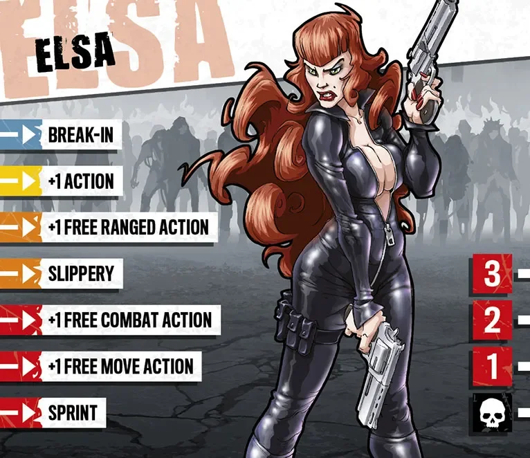 Elsa était poursuivie par les policiers sur les toits quand les zombies sont apparus et ont changé sa vie. L’or n’a plus aucune valeur désormais mais les abris blindés dissimulent toujours des biens précieux. Joueuse et souriante au milieu du chaos, le chat se rie de l’apocalypse. Les barrières sociales sont tombées, seul compte le talent. Et Elsa est si talentueuse !