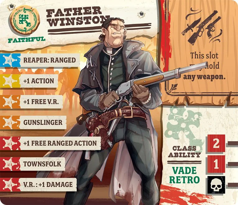 Father Winston is a good man in a bad position. Unable to so much as swat a fly for most of his life, he now finds himself gunning down the risen dead. It took some time for him to pick up a gun, though when he did he discovered he had a natural eye. Sadly, this disturbed him even more. Ultimately, he’s reconciled himself to the fact that the Commandment’s true meaning is ‘Thou shalt not murder’. Self-defense is not murder, and these poor souls are not really alive, are they?