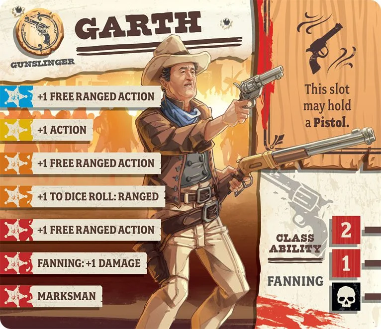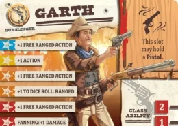 Garth has gotten on in years, and well, his brain’s a little bit addled. Maybe it’s the drinking, though no one would call him a full-time drunkard, and maybe it’s all the bar brawls, though he won a lot more than he lost. More likely the bullet that ricocheted off his scalp a few years back knocked his noodle around a bit much, and now poor Garth has trouble remembering names, places, and even himself. Fortunately, his gun skills are still sharp as ever, and one can’t mistake a zombie for their own reflection in a looking glass.