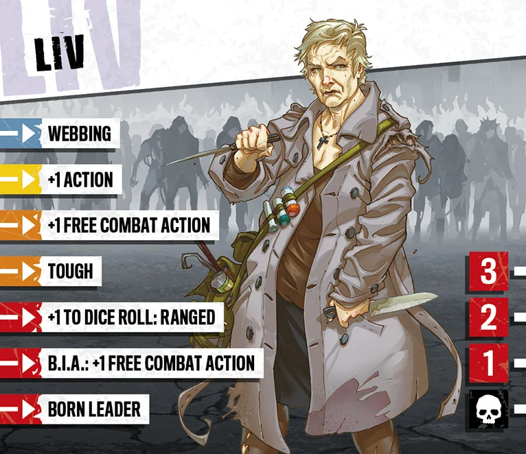 Olivia (’Liv to her friends’) worked her way up through the ranks of the NYPD to become a detective second-grade. But when an investigation ran afoul of the newly minted mayor, she became the subject of an Internal Affairs witch hunt, and was forced to resign in disgrace. Hard-bitten and hard-boiled, she began work as a private detective, and made a successful, if unsatisfying career of it. Then the zombie apocalypse began. Resourceful and intelligent, Liv is wholly reliable to her fellow survivors. But, do be aware that if you have any secrets, she’s probably already figured them out.