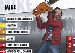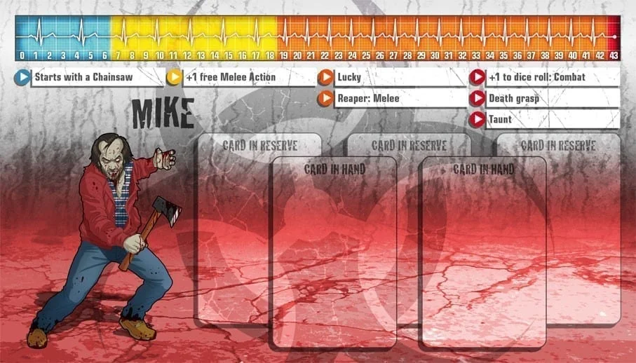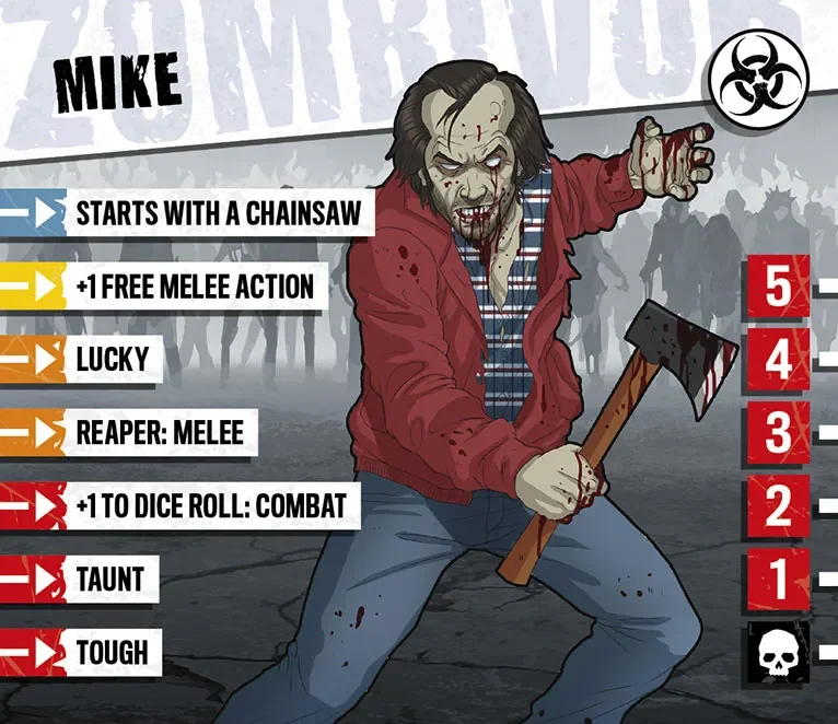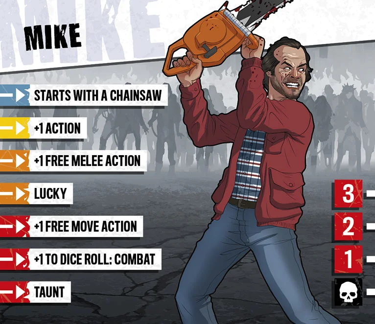 Œuvrant avec de la pâte et des outils minuscules, Mike s’est enfermé pendant des années dans son studio pour sculpter des figurines pour des jeux de société. Obsédé par son art, il n’a même pas remarqué quand sa femme le quitta en emportant leur fille avec elle, et il n’a pas remarqué l’apocalypse zombie non plus ! Enfin, en tout cas, jusqu’à ce qu’il doive planter un de ses outils dans l’œil du facteur, et qu’il s’aventure dehors pour satisfaire sa curiosité. Mike travaille désormais avec les autres survivants, bien que ces derniers soient un peu mis mal à l’aise par la joie qu’éprouve Mike à voir enfin de vrais zombies croiser dans les parages.