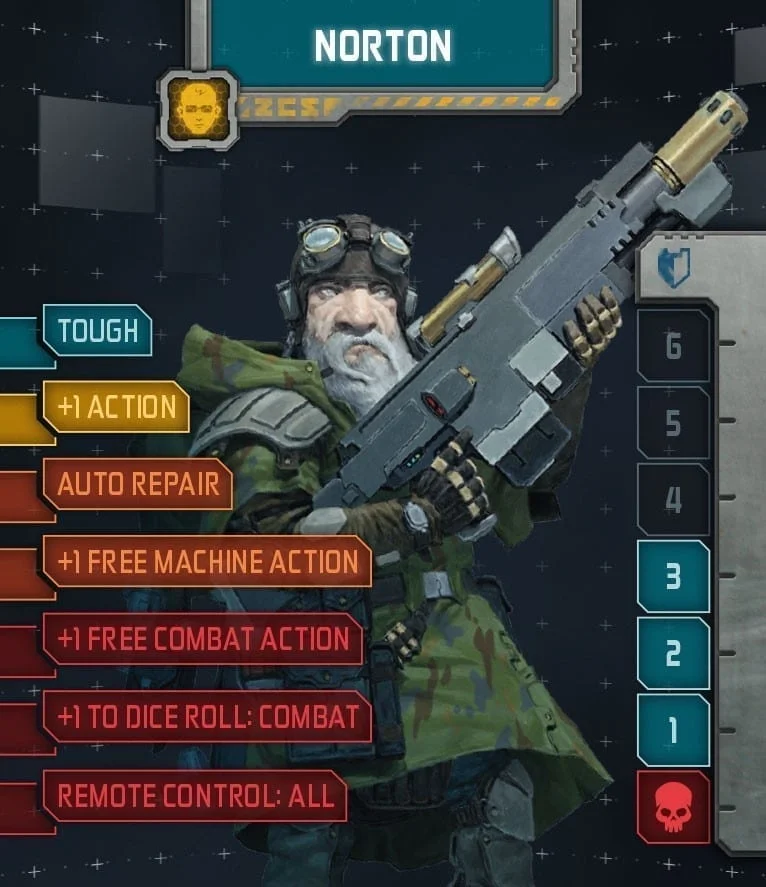 Norton Luckless learned his engineering and mechanical skills as a form of self-defense. He does indeed seem to be somewhat ‘Luckless’, as there’s no computer he can use that won’t eventually break, no vehicle he can ride that won’t suffer a malfunction, and no weapon he uses that won’t misfire. Fortunately, he’s adept at quick, effective repairs, often leaving the equipment better off than when he found it. Morton has received no end of ribbing over his surname, but being stuck on PK-L7 he’s starting to believe it.