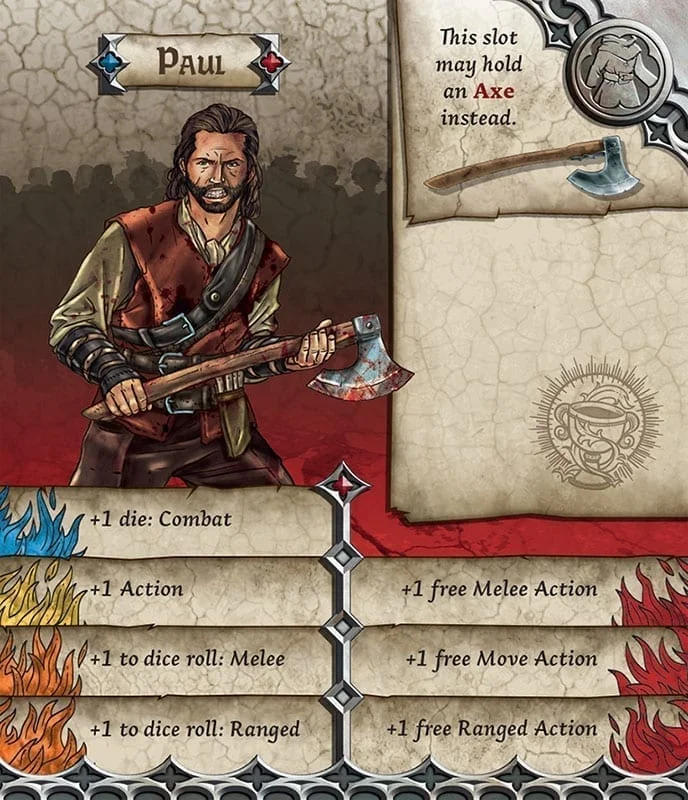 Paul the Huntsman was content wasting his life away in drink and, occasionally, hunting. He’d crawled into a bottle in a cabin in the woods and was there to stay. Then the zombies came. They came slowly, a few at a time through the thick underbrush. And he chopped through them like old logs. It wasn’t until one of them nearly killed him that the Huntsman clambered out of the bottle. Since he’d love to climb back in, he plans to kill them all and go back to drinking.