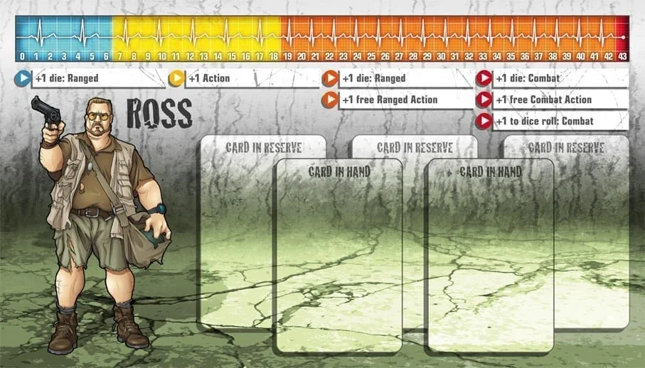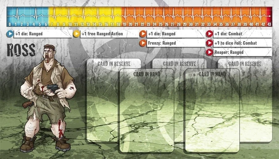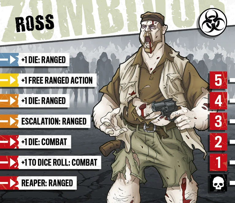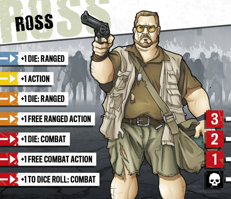 Ross menait une vie paisible de gestionnaire de stock quand les zombies sont apparus. Ross, toutefois, n’est pas celui qu’on croit. Il a quitté l’armée il y a vint ans avec des cicatrices et un syndrome post-traumatique, et croyait avoir tourné la page. Cette invasion a réveillé quelque chose en lui, quelque chose de sale qu’il croyait enfoui à jamais. Ses instincts de soldat sont revenus à la charge, tout comme ses anciennes blessures. Sa vision tactique et son expertise des armes sont néanmoins précieuses pour n’importe quelle équipe de survivants. Si seulement il voulait bien lâcher sa boule de bowling…