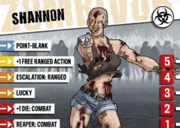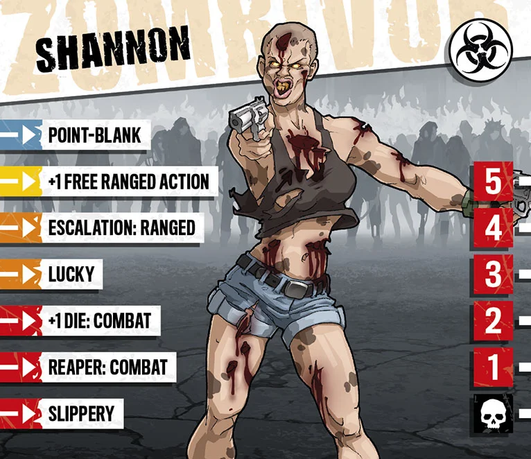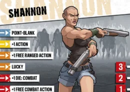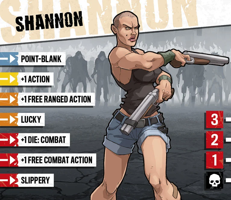 D’ascendance irlandaise, Shannon est une femme d’action. Les guerres de gangs, les milices, l’armée, elle a tout fait mais n’a jamais trouvé une bataille dans laquelle s’engager corps et âme. De retour à la vie civile après un énième accident avec son dernier partenaire, Shannon cherchait un boulot de videuse quand les zombies sont arrivés et ont donné un vrai sens à son existence. Shannon a désormais plus d’une cause à défendre : survivre, protéger des civils et exterminer des zombies avec extrême préjudice. Auréolée de sang et de mort, Shannon se sent comme chez elle et plus vivante que jamais.