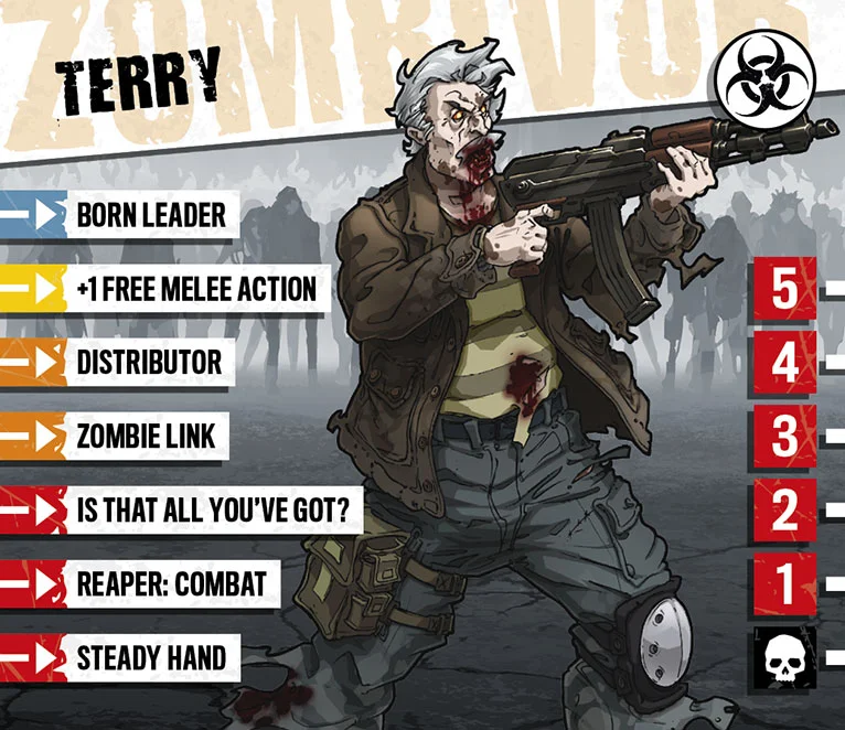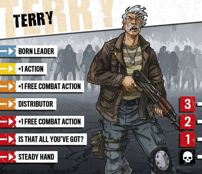 Ancien combattant, Terry a quitté un champ de bataille pour un autre. Ses compétences d’officier pourraient transformer des collégiennes en une escouade de commandos. Alors, imaginez ce qu’il peut faire avec des survivants endurcis.