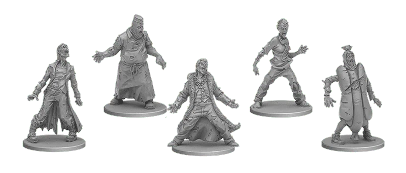 Cette boîte contient vingt figurines de Zombies VIP à chasser, douze cartes Zombie destinées à les mettre en scène, les règles pour les jouer, ainsi que trois nouvelles armes de pimp-mobile pour les meilleurs chasseurs de têtes !