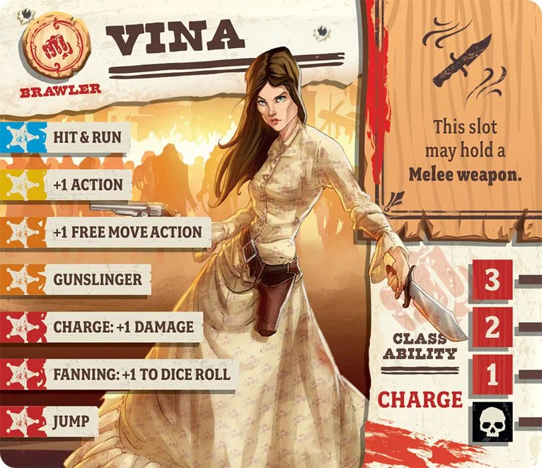 To hear Vina tell it, you’d think she’d traveled millions of miles to reach the West. Truth be told, New York really ain’t that far away. But her journey has been beset by no end of hardships. A derailed train, attacks by desperados, collapsing mines… just about any outlandish old thing you can think of has happened to Vina. And now: zombies. It just kinda figures, don’t it? Still, all these misadventures have taught her how to fight, revealing her to be a natural in the heat of battle. With luck, the apocalypse is about the last of her trials.