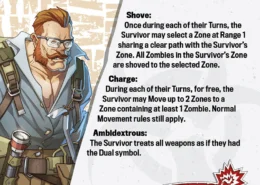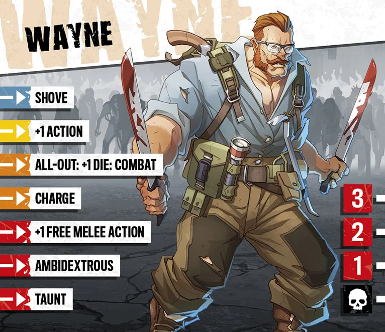 Wayne has been sitting on the fence of eco-terrorism for years. His defiance toward extremism, and the love of her wife Michelle, prevented him to break the law. A feral heart, Wayne patiently waited for the civilization to fall. He was right, and now, he does his best to help survivors linking to Mother Earth. He didn’t think about the zombies, though. Wayne sees them as a blight, and is eager to get rid of them. To quicken the process, he gladly joined Marian and Penny in their journey to Fort Hendrix.