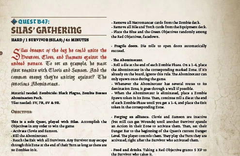 A Dwarf, and Elf and a Human must unite against the undead. In this case, Silas must gather Samson and Clovis to together face the ferocious Abominotaur!