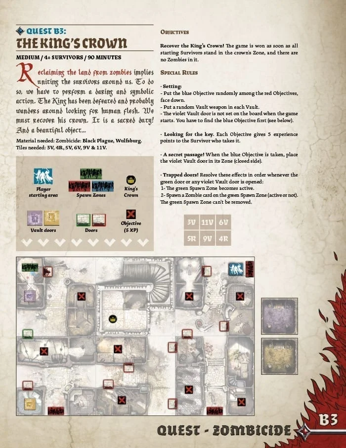 Après la défaite de son armée face aux zombies, le Roi partit se cacher, et disparut… jusqu’à maintenant. Vous l’avez retrouvé, ainsi que le reste de sa suite royale, transformés en zombies en quête de chair fraîche. L’heure est revenue de livrer un assaut intrépide pour reprendre la couronne ! Survivants, rassemblement !
