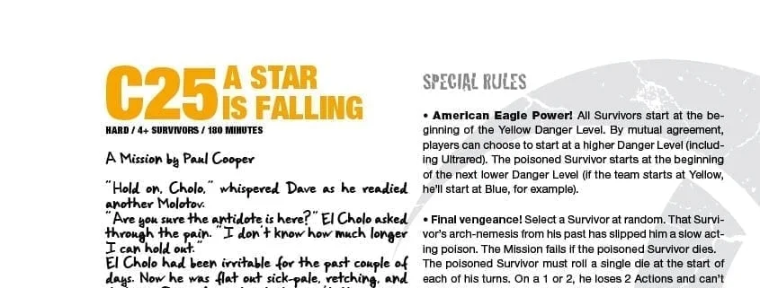 A Une mission vraiment hollywoodienne. Un de vos héros est empoisonné et l’équipe s’est réunie au grand complet pour trouver un remède au cœur d’un building infesté de Walkers. Les vrais héros ne meurent jamais, n’est-ce pas ?
