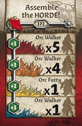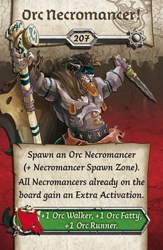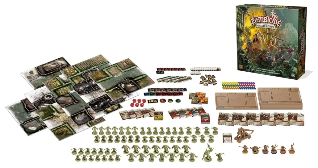 Zombicide: Green Horde is a standalone cooperative boardgame for 1 to 6 players. Form a fantasy team with your friends and harness your survivors’ skills to achieve victory against hordes of infected orcs! The zombies are controlled by the game itself, using simple rules and a deck of cards. Play 10 quests on 10 different maps made with the included modular map tiles, or create your own. Find weapons. Kill zombies. The more zombies you kill, the more skilled you get, and the more zombies appear!