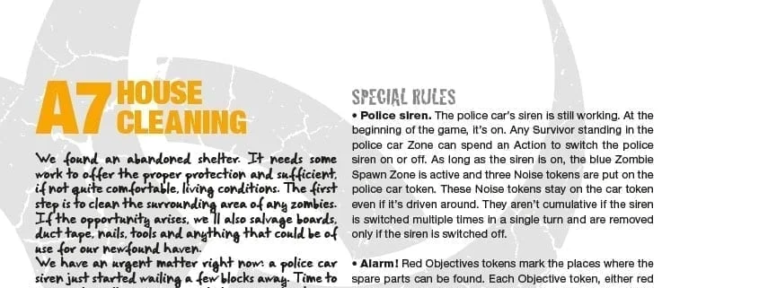 Classic MissionHouse CleaningGuillotine Games You found a reliable shelter. Now, it’s time to clean the surrounding of all zombie presence and find some duct tape to lock it all. Hey, is it a police siren you’re hearing? PDF 9 November 2012 https://cdn.svc.asmodee.net/production-zombicide/uploads/image-converter/2016/01/Mission_A7.webp 1094 845 Thorn https://cdn.svc.asmodee.net/production-zombicide/uploads/2021/11/logo-zombicide-r2.png Thorn2012-11-09 16:52:412018-05-28 09:32:34House Cleaning