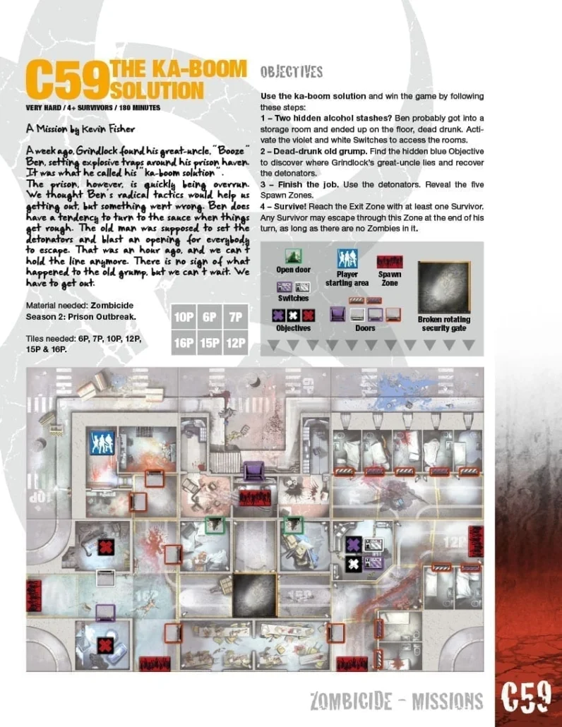 Classic MissionThe Ka-Boom SolutionKevin Fischer “Booze” Ben only had one thing to do… and disappeared. Now you’re trapped in your own haven with tons of zombies incoming. Find Ben, get his explosives and run like Hell! PDF 26 March 2015 https://cdn.svc.asmodee.net/production-zombicide/uploads/image-converter/2016/01/Mission_C59.webp 1094 845 Thorn https://cdn.svc.asmodee.net/production-zombicide/uploads/2021/11/logo-zombicide-r2.png Thorn2015-03-26 16:52:412018-05-28 09:31:51The Ka-Boom Solution