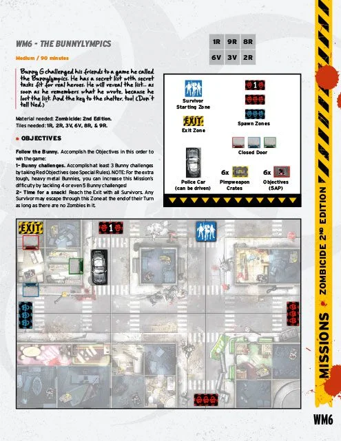 Modern MissionThe BunnylympicsGuillotine GamesIt’s time for the Bunnylympics! Complete at least 3 of Bunny G’s mini challenges and then escape to win this scenario. Let’s see if you can get a gold medal! PDF 3 September 2021 https://cdn.svc.asmodee.net/production-zombicide/uploads/image-converter/2021/09/Mission-WM6-The-Bunnylympics-1.webp 641 495 Thorn https://cdn.svc.asmodee.net/production-zombicide/uploads/2021/11/logo-zombicide-r2.png Thorn2021-09-03 09:48:542022-11-14 18:07:22The Bunnylympics