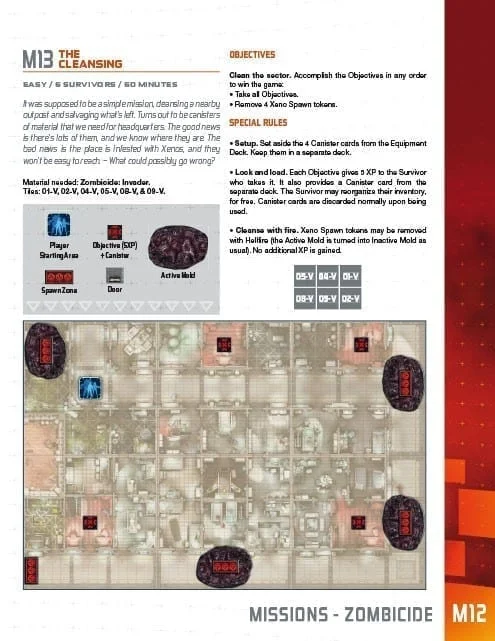 SciFi MissionThe CleansingGuillotine GamesThis outpost sure is loaded… Both with useful material and with mold! We need this back at the base, so it’s time for a deep cleaning! PDF 11 September 2020 https://cdn.svc.asmodee.net/production-zombicide/uploads/image-converter/2020/09/Mission_M13_The_Cleansing.webp 641 495 Thorn https://cdn.svc.asmodee.net/production-zombicide/uploads/2021/11/logo-zombicide-r2.png Thorn2020-09-11 09:13:462020-09-11 09:13:46The Cleansing