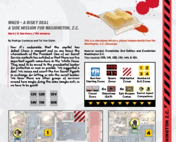 A standalone mission for Washington Z. C.! The capital has fallen and one of our Secret Service contacts has notified us that there are two important agents somewhere in the White House. They need to be moved to the presidential bunker for protection as soon as possible.