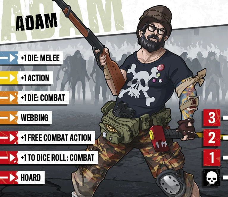 Most people feel unease when meeting Adam for the first time. Such a cheerful pal has to be crazy! Adam sets things right in a matter of minutes. He chose to enjoy his newfound life in the zombie apocalypse and gladly shares his positive vibes with anyone around. Except zombies, of course, who feels how proficient this happy warrior is with any weapon, especially melee ones.