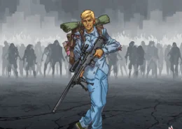 Wilhelmena ‘Billie’ always knew weightlifting machines could be dangerous, but it wasn’t until the zombies at the gym turned into actual zombies that she figured they could be weaponized too. In a way, she’s been preparing for this moment in history all her life. A dedicated fitness professional, she can out-run, out-lift, and out-fight any zombie, and almost any survivor. Fitness has become more than just a way of life. It’s now an absolute necessity. She trains other survivors too, but keeps the ball & chain to herself. It’s more dangerous to a newbie than the zombies.