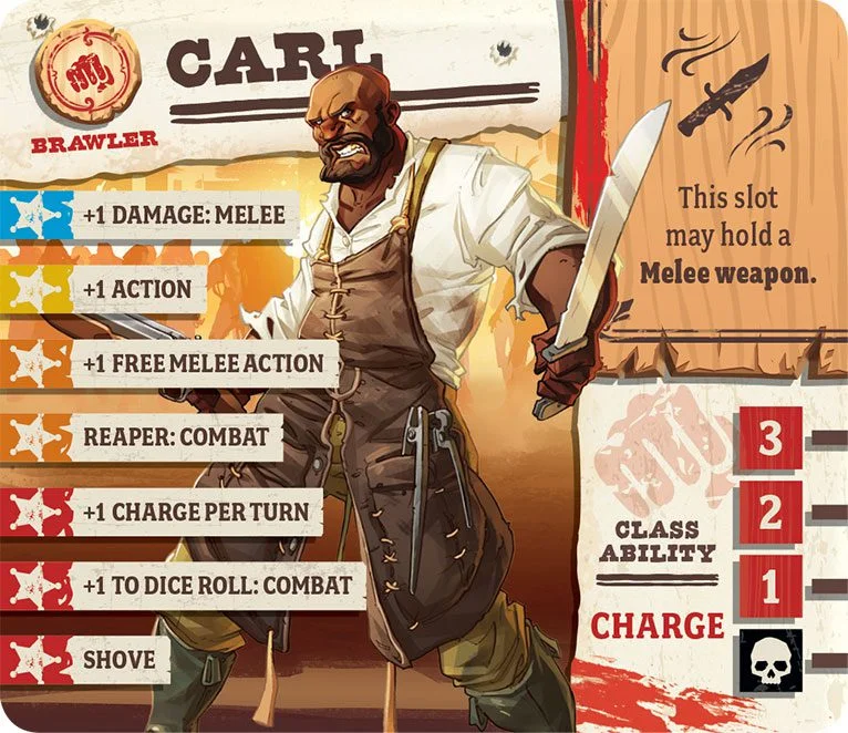 Carl’s always had a gift for mechanics and engineering. He never had a formal education, but any sort of mechanical device or contraption just speaks to him. From locomotives to pocket watches, if it’s broken, then Carl can fix it. He traveled to the West pursuing a life of opportunity. And then the zombies happened, and well, ‘opportunity’ comes in all shapes and sizes. He’s always been immensely strong, and with a good blade and a will to live, he’s confident he can get through the zombie apocalypse and help out his friends and fellow survivors along the way.