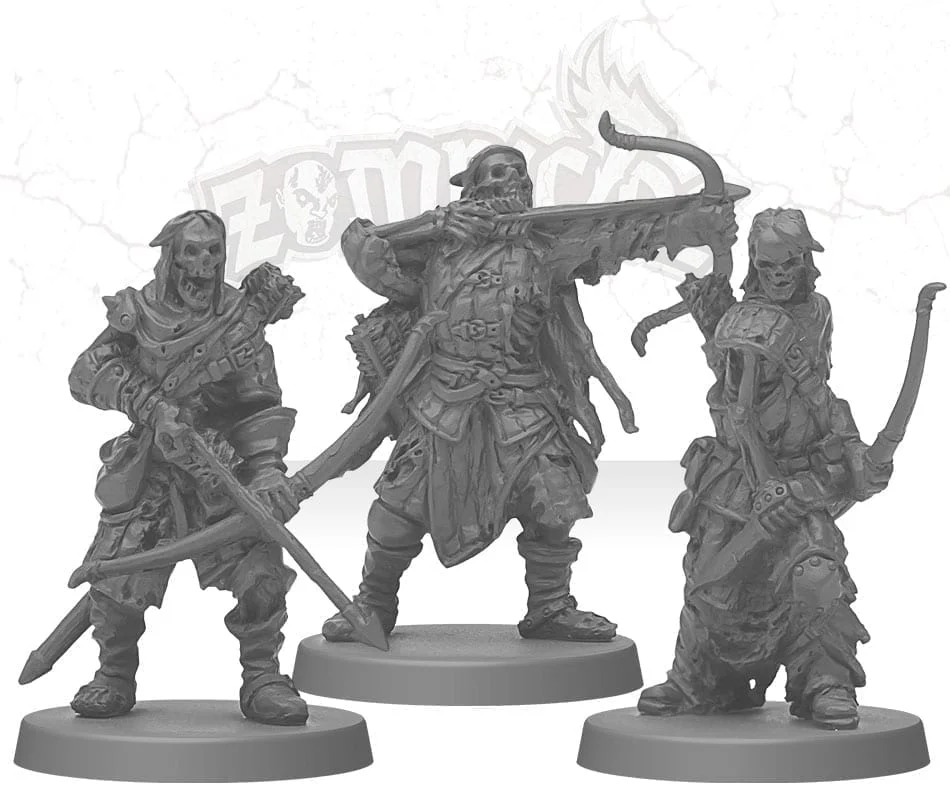 The latest trick up the Necromancers’ sleeves is a manipulation of the zombie infection that allowed skilled archers to retain their deadly accuracy in zombie form. The Deadeye Walkers box comes with 21 Deadeye Walker miniatures in three different sculpts and 6 spawn cards to add these skeletal zombie archers to your game!