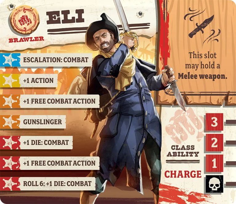 Eli was a former cavalryman in the Army during the last war. An unfortunate incident with a cannon nearly destroyed both his hands, but he’s since recovered most of their old flexibility. He went out West to pan for gold, but sadly nothing ever really materialized. He’s never been penniless, but the drifting life has brought him from town to town, working as needed on ranches and farms. In truth, the zombies have given him renewed purpose, since helping people in need was always a calling.