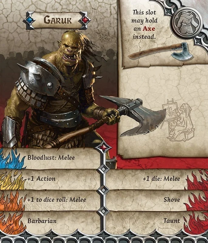 Garuk likes fighting. He liked fighting when he was a youngling, at least. Now he has a nest of younglings of his own, and he finds the axe and sword are less light in his hands than they were before. But, the thrill of the battle, that still sings in his blood. The thud of his axe in the enemy’s neck, that still spurs him forward. The thought of these creatures and what they would do to his younglings… that keeps him going when all else fails him.