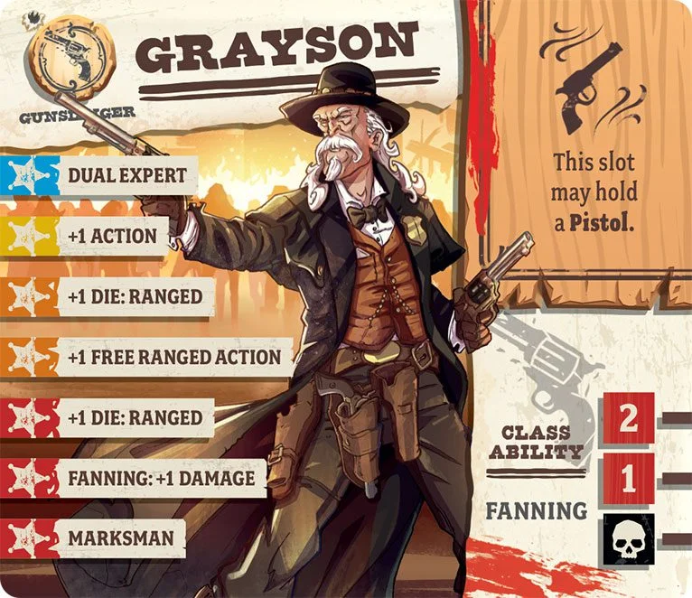Grayson has done every job the West has to offer from ranching to farming to cattle drives and even maybe a few things on the wrong side of the law. Not that law makes much difference anymore when every town is full of zombies. He’s a bit on the older side, but that hasn’t affected his vision or reflexes. He can still bullseye a fly off a cowpat at a hundred yards, and zombies are a bit bigger than cowpats, even if they often smell the same.