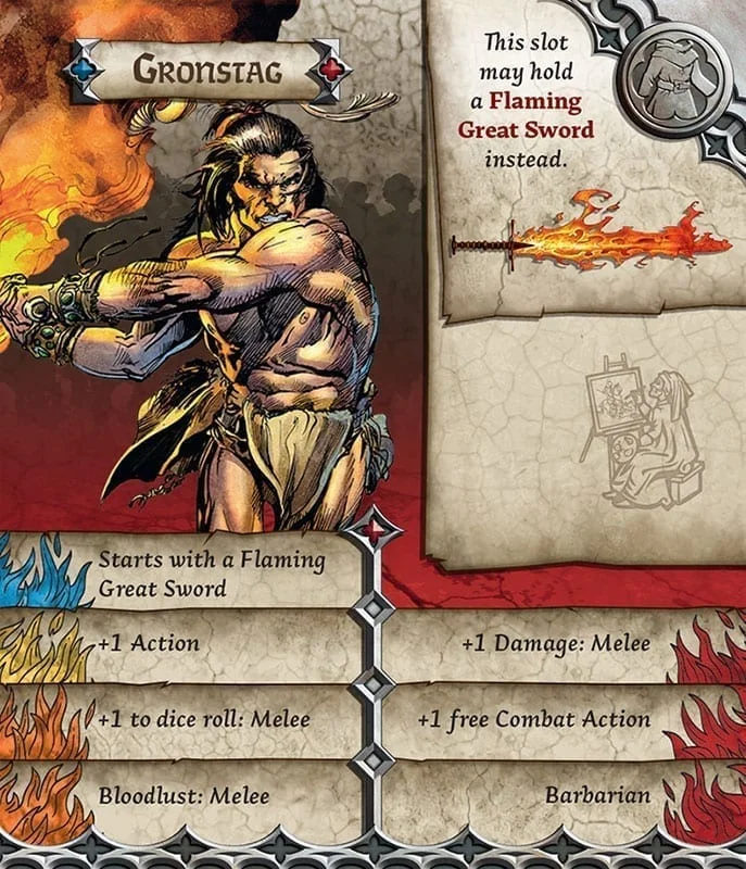 Gronstag has never had much use for civilization, for law, for cities. He grew up in the hard lands, and he fights like a hard person. That’s all that life has been for him. He has never had much use for the soft city people and their soft clothes and rules. But people are still people, and zombies… well, even Gronstag can figure out that those aren’t people. So with Foe-Burner, his mighty sword, he will cut through these soft zombies until they are all ash.