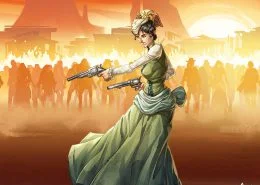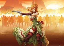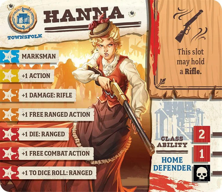 Hanna’s lived her entire life in the West on the family ranch. She can round up a herd, butcher a hog, and bullseye a rattler at two hundred paces. She’s protected the ranch against interlopers, rustlers, and anyone else that would poach their beef, steal their horses, or do Hanna and her people any harm. It’s a rough life, but Hanna’s a tough gal. Her greatest self-indulgence is getting gussied up for town when traveling performers put on their shows. And, naturally, that’s exactly when the zombies attacked. Fortunately, Hanna always travels well-armed.