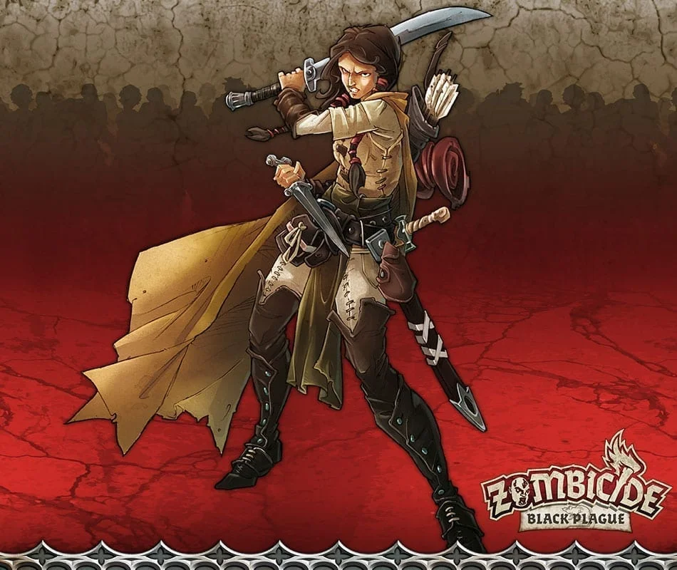 One might think Katelyn brings a few too many blades to the fight against the Green Horde, but then she usually ends up employing them all in any given engagement. A bow for range, long blades for open areas, short blades for close in, and as many daggers as she can carry. Before the black plague struck the Green Horde she’d been a weaponsmith’s apprentice, and when the army was shattered and the towns and cities overrun, she and her master took everything they could carry. Alas, her master did not survive, and she now carries the burden alone.