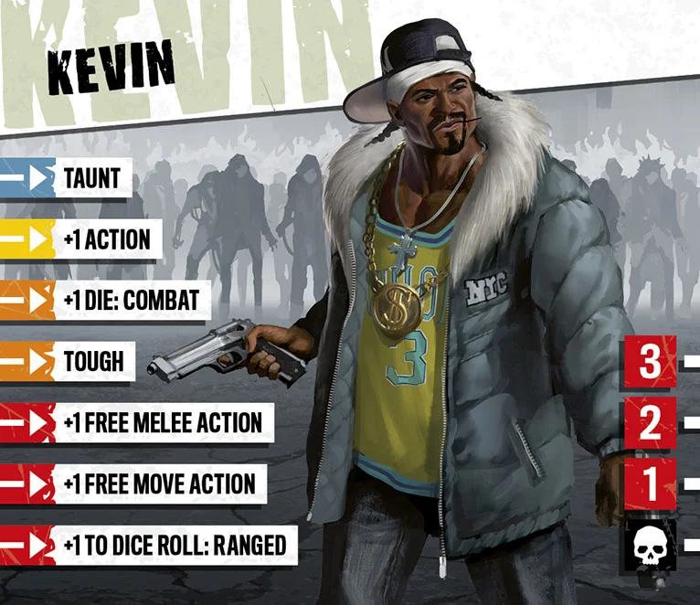 Kevin was born in an affluent suburb, the only child of loving parents. Inspired by his father, a cop for twenty-five years, Kevin applied to the Police Academy. Graduating at the top of his class he discovered a real talent for undercover work, making several big busts and bringing down a drug kingpin. The only thing missing from Kevin’s life was the lack of a partner. He felt that his job was too dangerous to raise a family. The zombies ended Kevin’s undercover career but he still plays the role, using his dangerous persona to draw out the wicked and protect the innocent.
