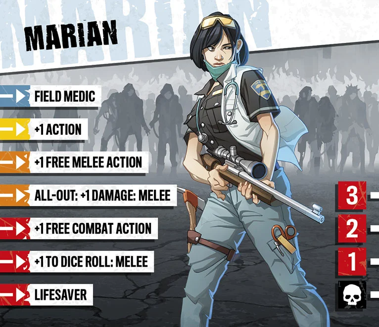 Marian was… wait, still is an Emergency Medical Technician. Sure, her ambulance was flipped over by an Abomination, and she has been running ever since to take care of other survivors. As the smoke is clearing over a zombie world, Marian finally realizes things may never be the same. No time to be sad: Penny, a childhood friend, contacted her with alarming news about zombie experiments in Fort Hendrix, a remote military base. Marian and Penny are off to gather a survivor team and investigate.
