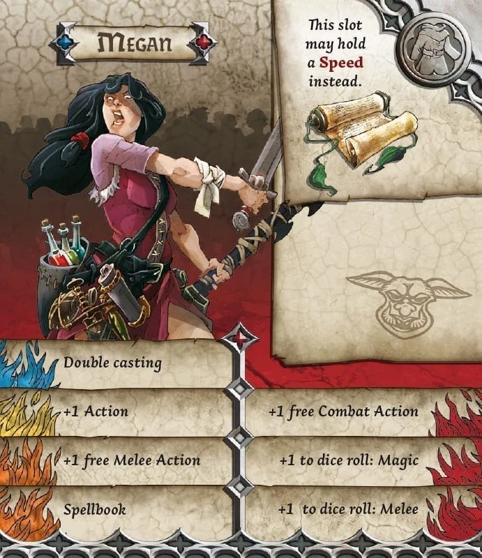 Heir to a family of thieves, Megan showed an uncanny mind at the earliest age, coupled with an unquenchable thirst for learning. She chose to become a magician and, with the support of her family’s guild, had access to all kinds of books. As the time went by, the girl chose an adventurer’s life and became a unique kind of mercenary. After some time, Megan sought knowledge and power for herself: she was looking for an ancient burial mound deep in orc territory when the zombies came.