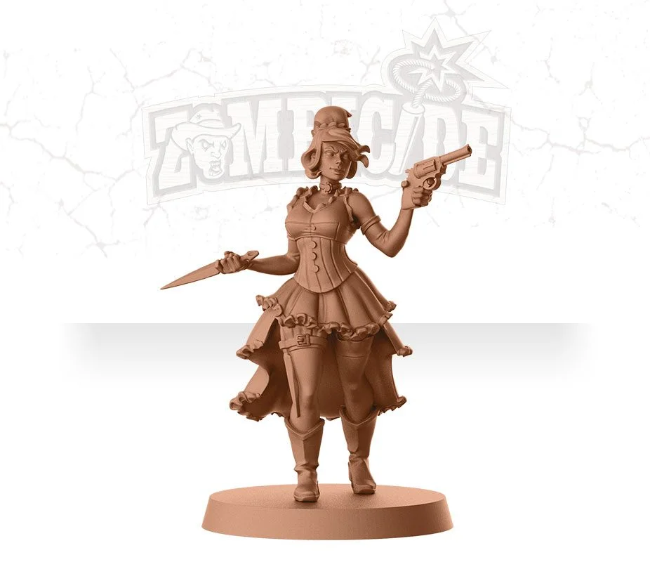 Ollie has a storied past that she isn’t terribly interested in sharing with anyone. She’s a woman of fashion and manners, well-spoken, and well-educated. And she can dead-shot a zombie in the eye from galloping horseback at a hundred yards. Repeatedly. While she was never known to practice with firearms, when the zombie horde arose, she saved multiple townsfolk with her stunning gunplay, and gave professional advice to anyone willing to take up a gun. In light of her talents, whatever secrets she’s hiding are welcome to remain her own!